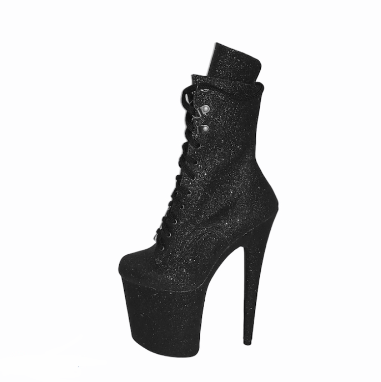 Boots are made of glitter fabric and have inner side zipper. Boots can be made with opened toe upon request. Well cushioned insoles provide extra comfort. Variety of vegan nubuck and other genuine and vegan shoe materials in different colors are available. Please contact us for desired color or shoe material.